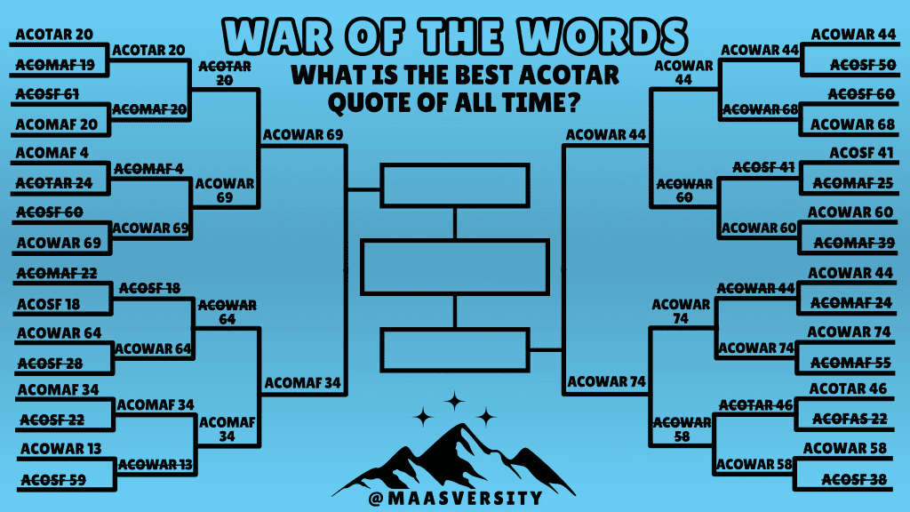 ✨War of the Words✨ What is the best ACOTAR quote of all time? VOTE NOW Courtle: An ACOTAR-Themed Word Game Get up to 6 tries to guess the word of the day- including character names, locations, objects, and other notable terms! PLAY NOW Meme Roundups 😂 Randomness 🪄 Want to stay up-to-date on all the latest Maasversity posts? Subscribe to my newsletter The Prythian Post and get an email alert every time a new quiz or article is published! Subscribe now