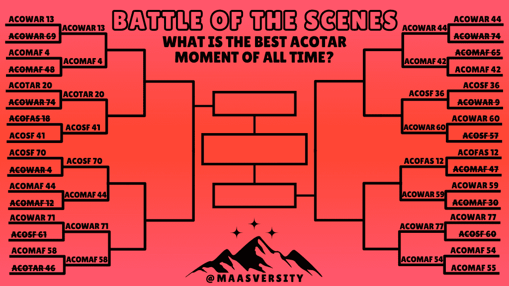 The bracket is back! But this time, instead of characters facing off against one another, we’re pitting scene against scene to determine once and for all which pivotal moment in the ACOTAR series reigns supreme.